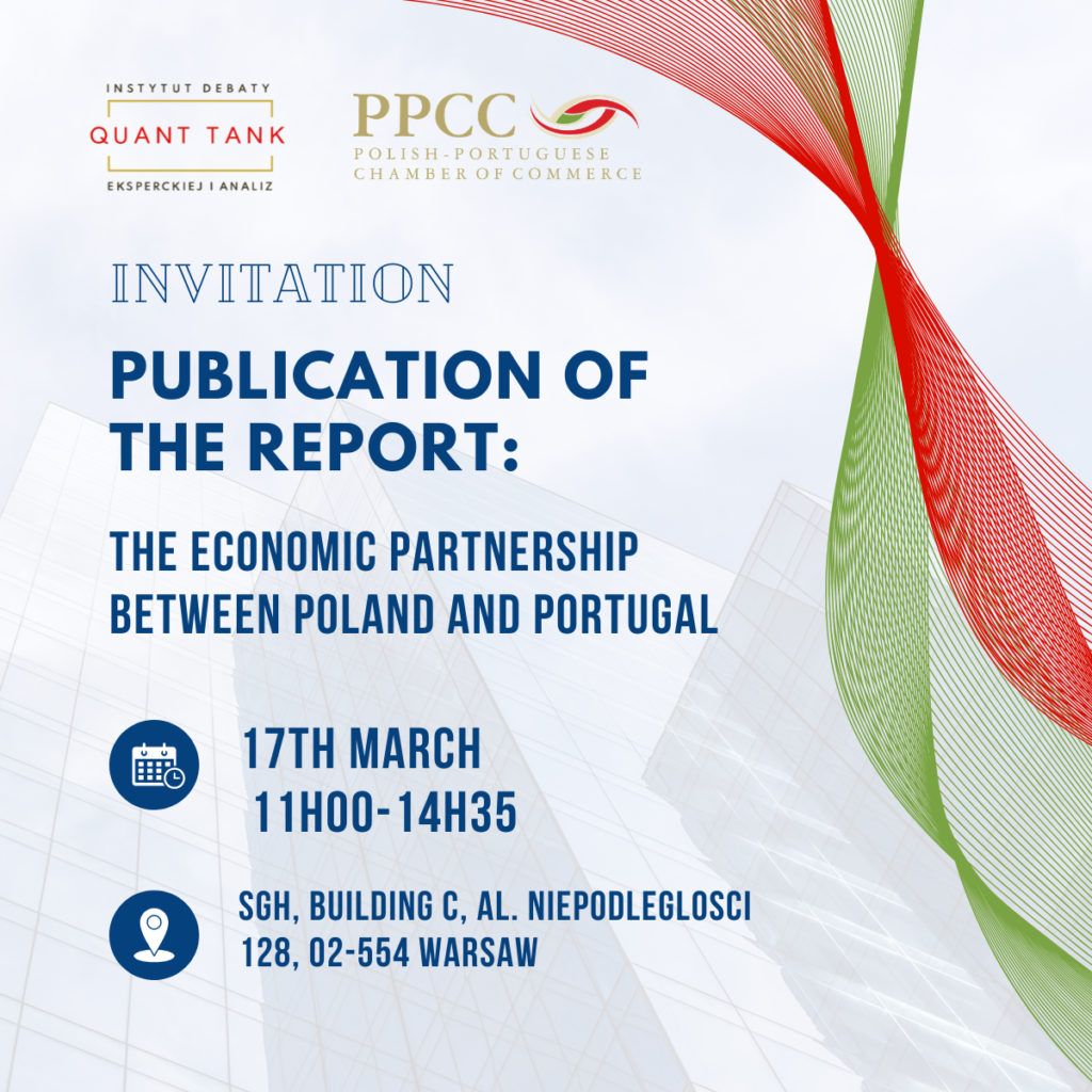 On behalf of the Polish-Portuguese Chamber of Commerce, we are honoured to invite you to the official Inauguration of the report “The economic partnership between Poland and Portugal”, which will take place on 17 March 2026 at the Szkoła Główna Handlowa w Warszawie (Warsaw School of Economics – SGH), Building C, al. Niepodległości 128, 02-554 Warsaw.